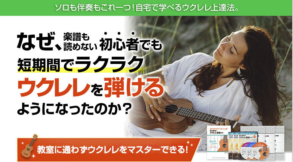 人気ウクレレ講師がやさしく丁寧に教える、初心者のためのウクレレ教材です。